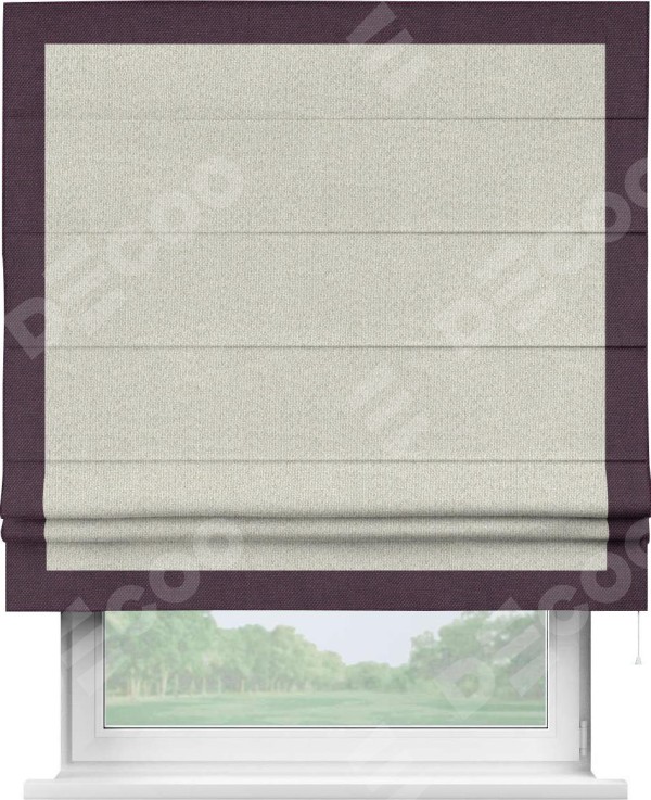 Римская штора «Cortin» для проёма, лён димаут светло-бежевый с кантом Чесс