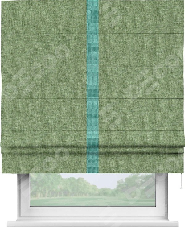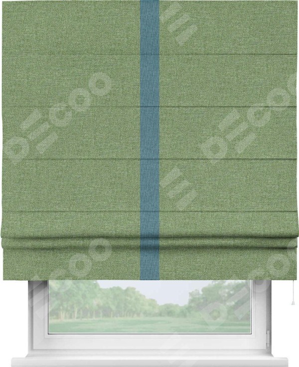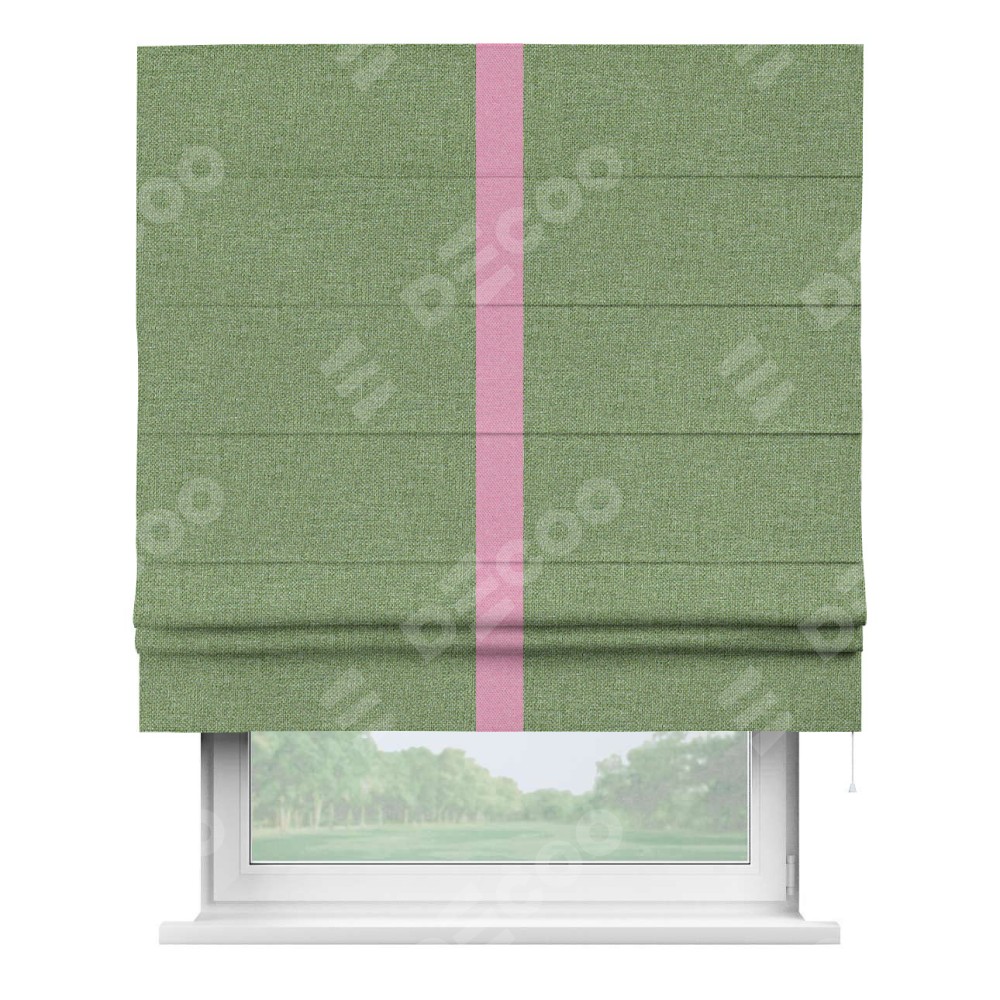 Римская штора «Cortin» для проёма, лён димаут светло-салатовый с кантом Хайвэй