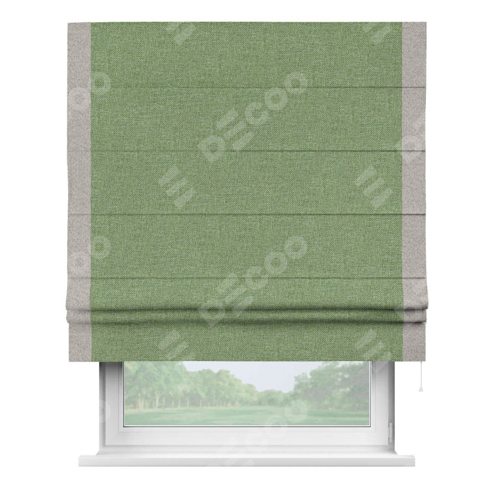 Римская штора «Cortin» для проёма, лён димаут светло-салатовый с кантом Стрим Дуо