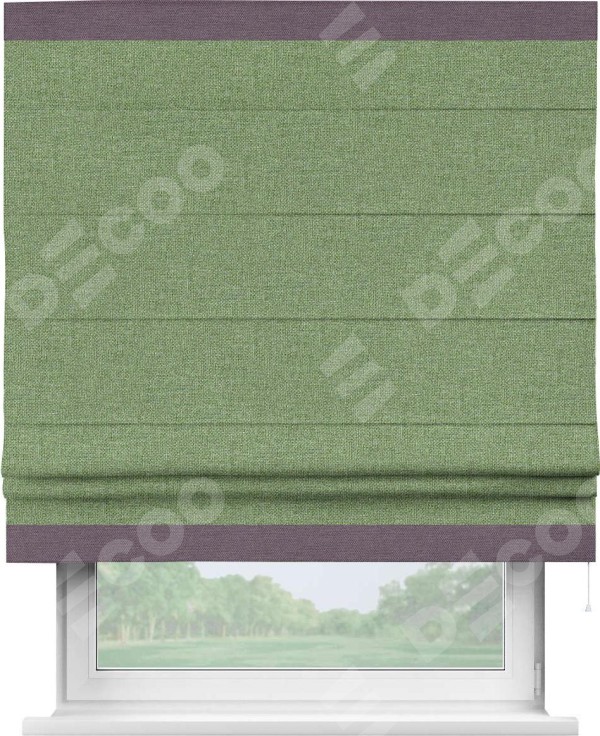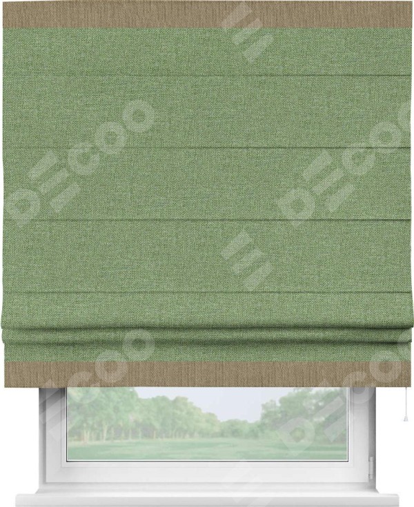 Римская штора «Cortin» для проёма, лён димаут светло-салатовый с кантом Горизонт