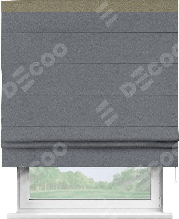 Римская штора «Кортин» с кантом Кинг, для проема, лён блэкаут тёмно-серый