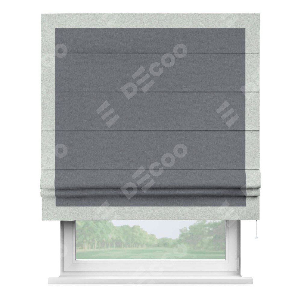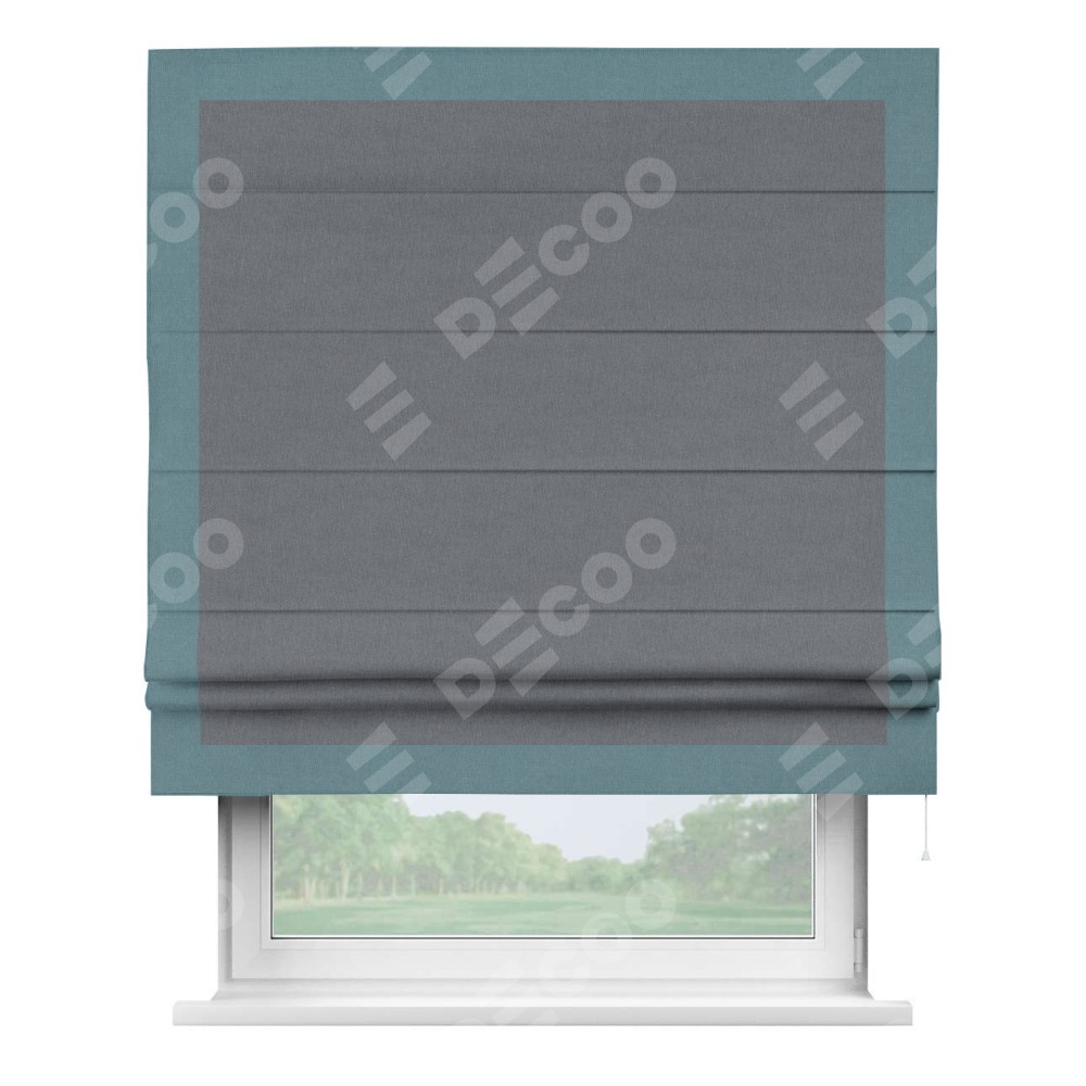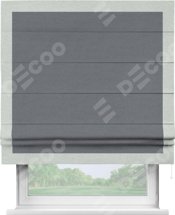 Римская штора «Кортин» с кантом Чесс, для проема, лён блэкаут тёмно-серый