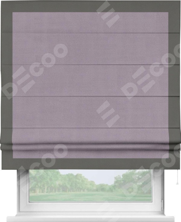 Римская штора «Кортин» для проёма, блэкаут однотонный лиловый с кантом Чесс