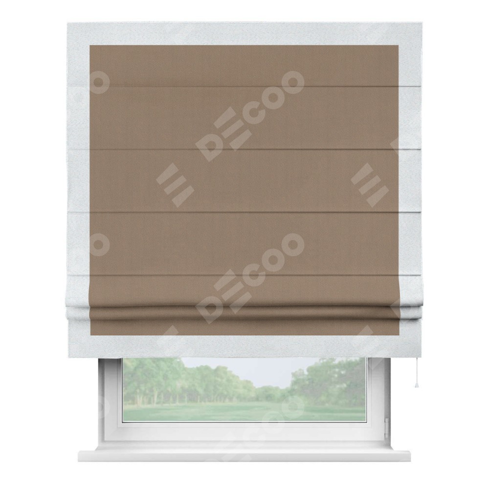 Римская штора «Cortin» для проёма, ткань блэкаут однотонный кофейно-бежевый с кантом Чесс