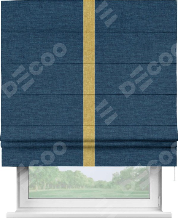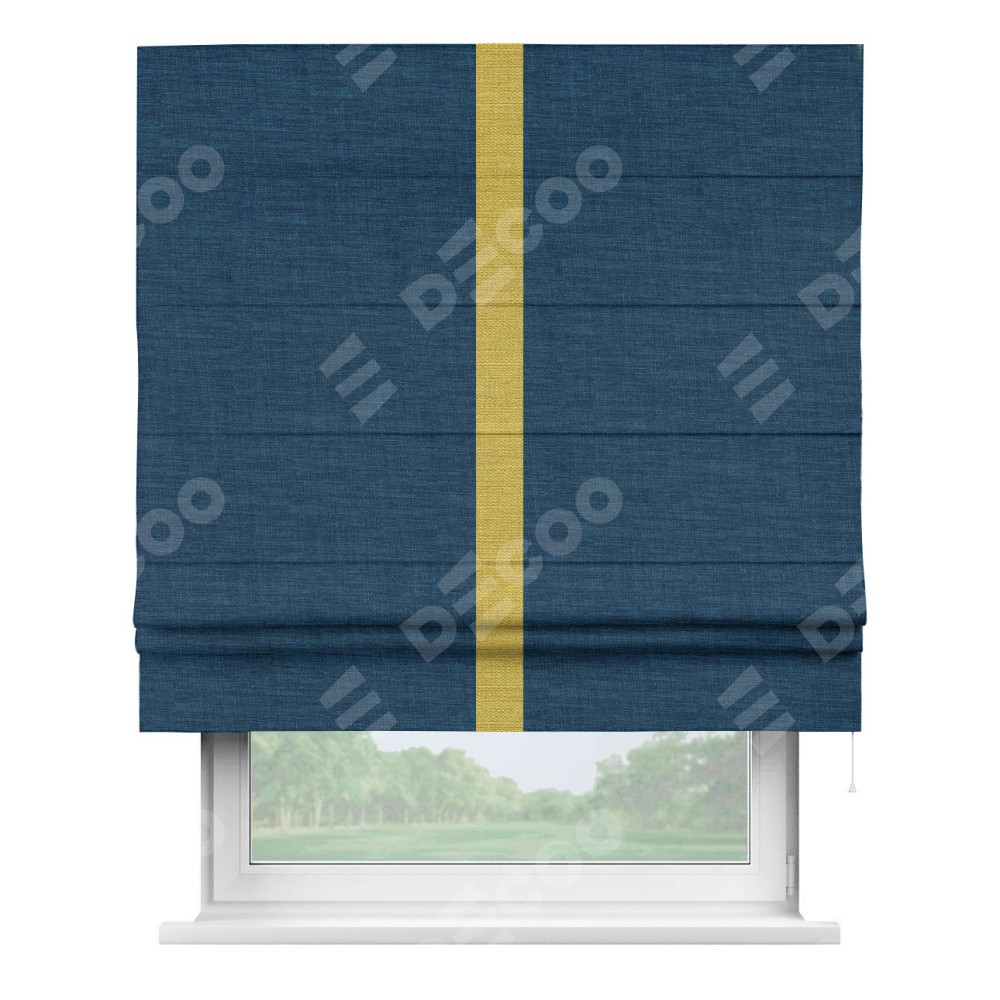 Римская штора «Кортин» для проёма, лён синий, с кантом Хайвэй