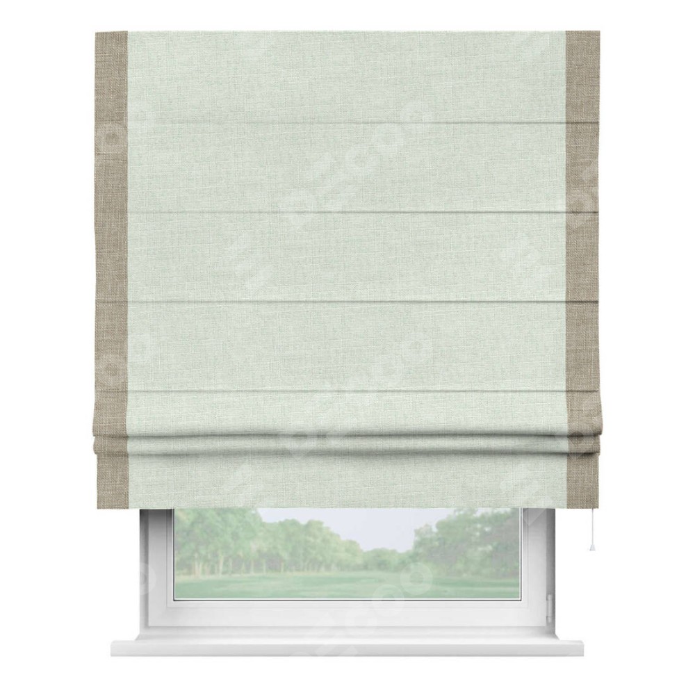 Римская штора «Кортин» для проёма, лён топлёное молоко, с кантом Стрим Дуо
