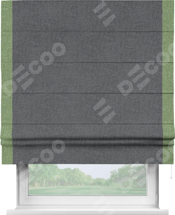 Римская штора «Кортин» для проёма, лён димаут графит с кантом Стрим Дуо