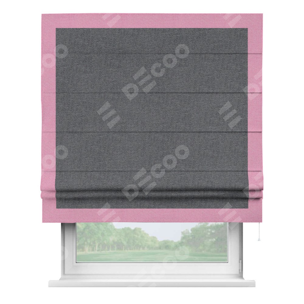 Римская штора «Кортин» для проёма, лён димаут графит с кантом Чесс