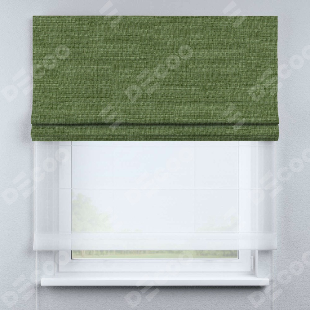 Двойная римская штора «День-ночь» от производителя Cortin предназначена для использования в проёмах. Эта штора уникальна тем, что состоит из двух полотен. На лицевой стороне находится лён зелёный (артикул: 131547), обеспечивающий эффективное затемнение. В комплект также входит вторая ткань — легкий белый тюль (артикул: V-01), который добавляет изящества и легкости оформлению окна. Кроме того, доступны и другие разновидности ткани тюль, выбор которых доступен по ссылке .