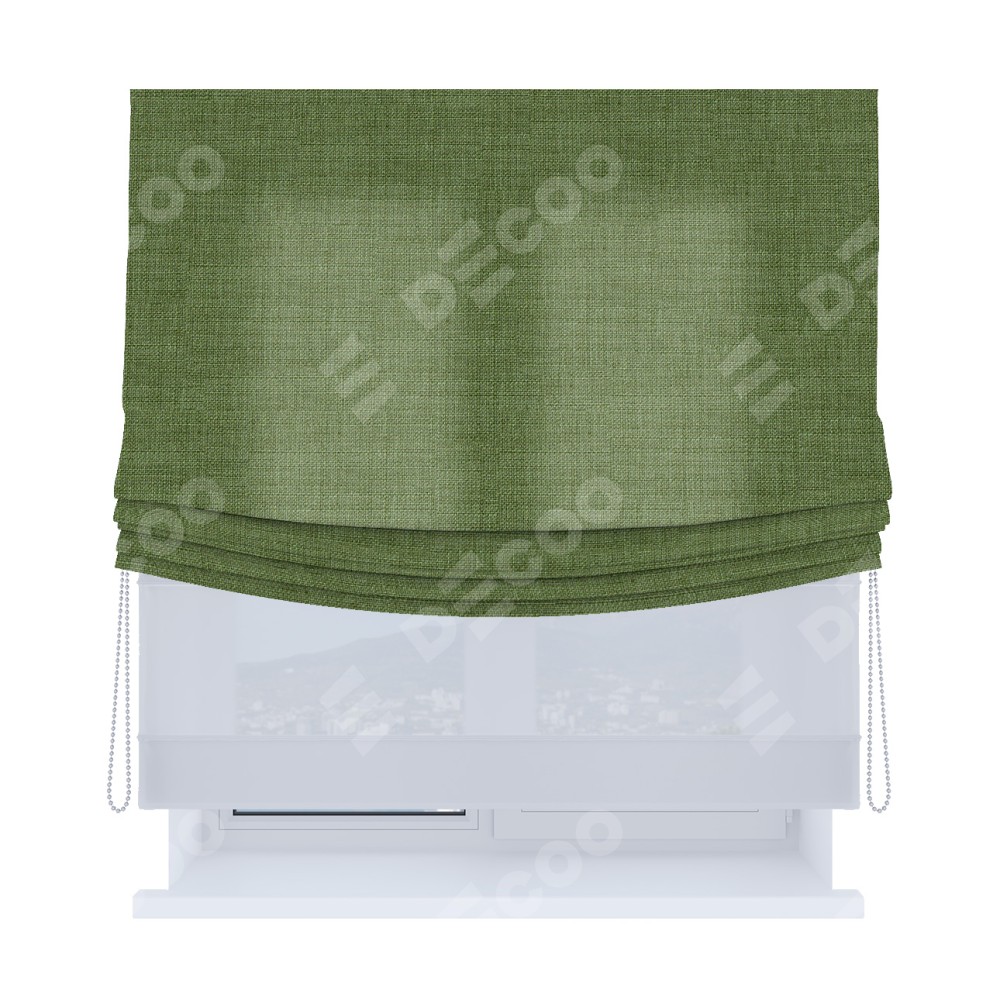 Римская штора «Кортин», лён зелёный, день-ночь с мягкими складками