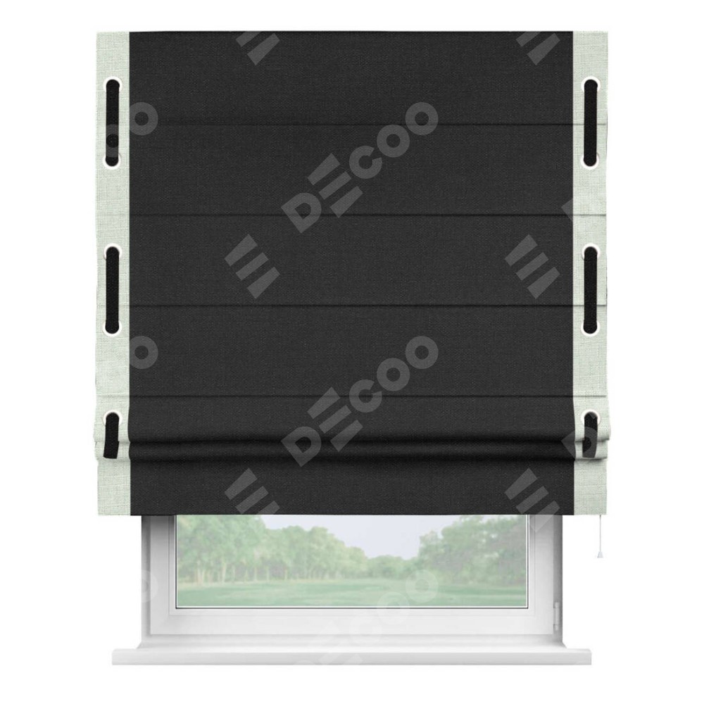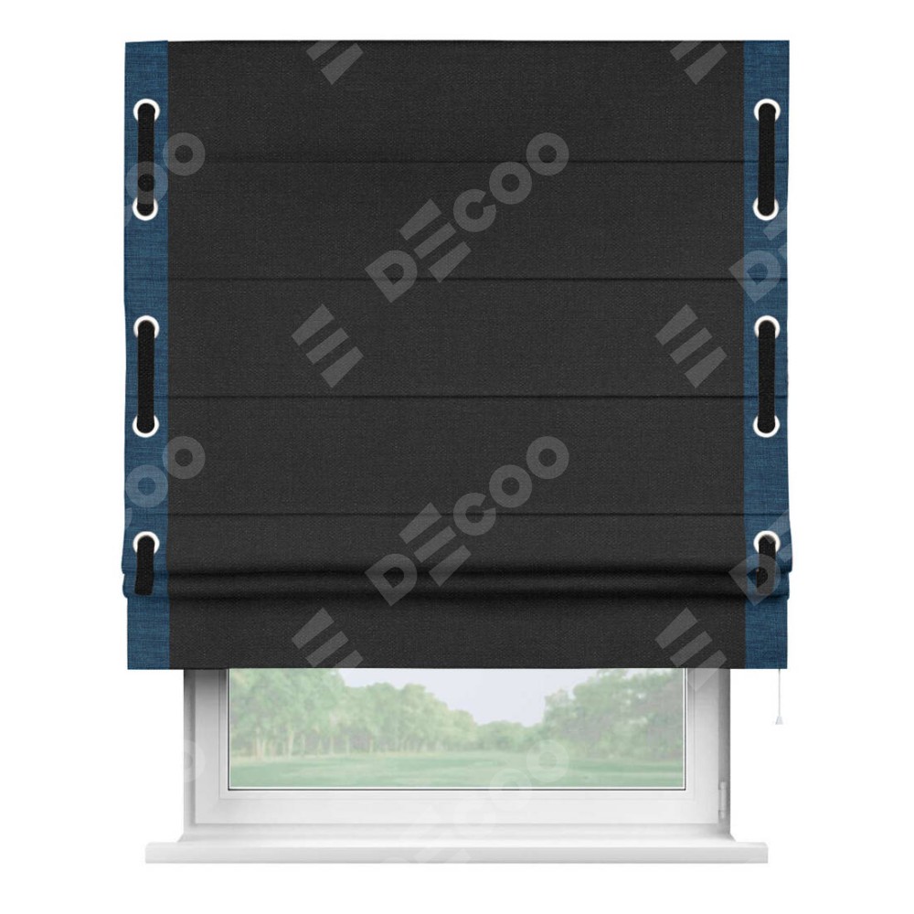 Римская штора «Кортин» для проёма, лён чёрный, с кантом Стрим Дуо (люверсы с пояском)