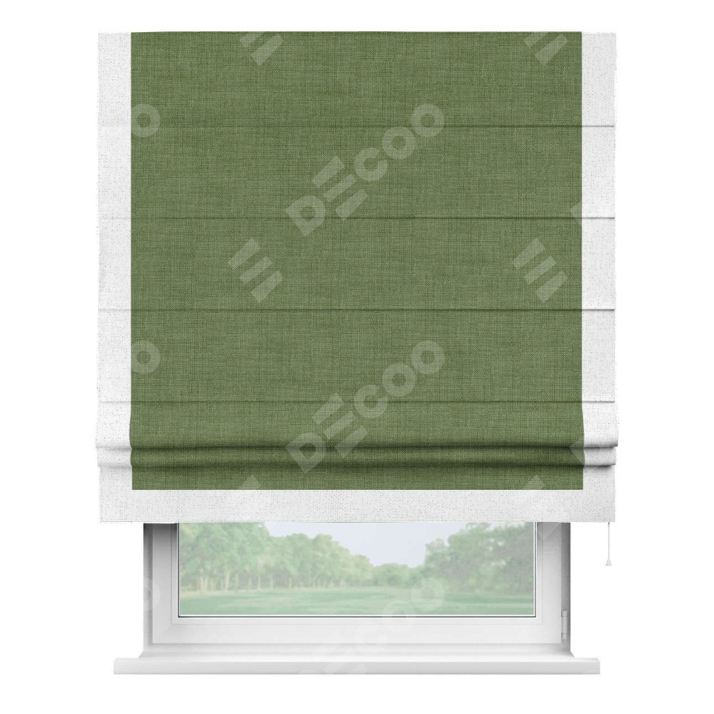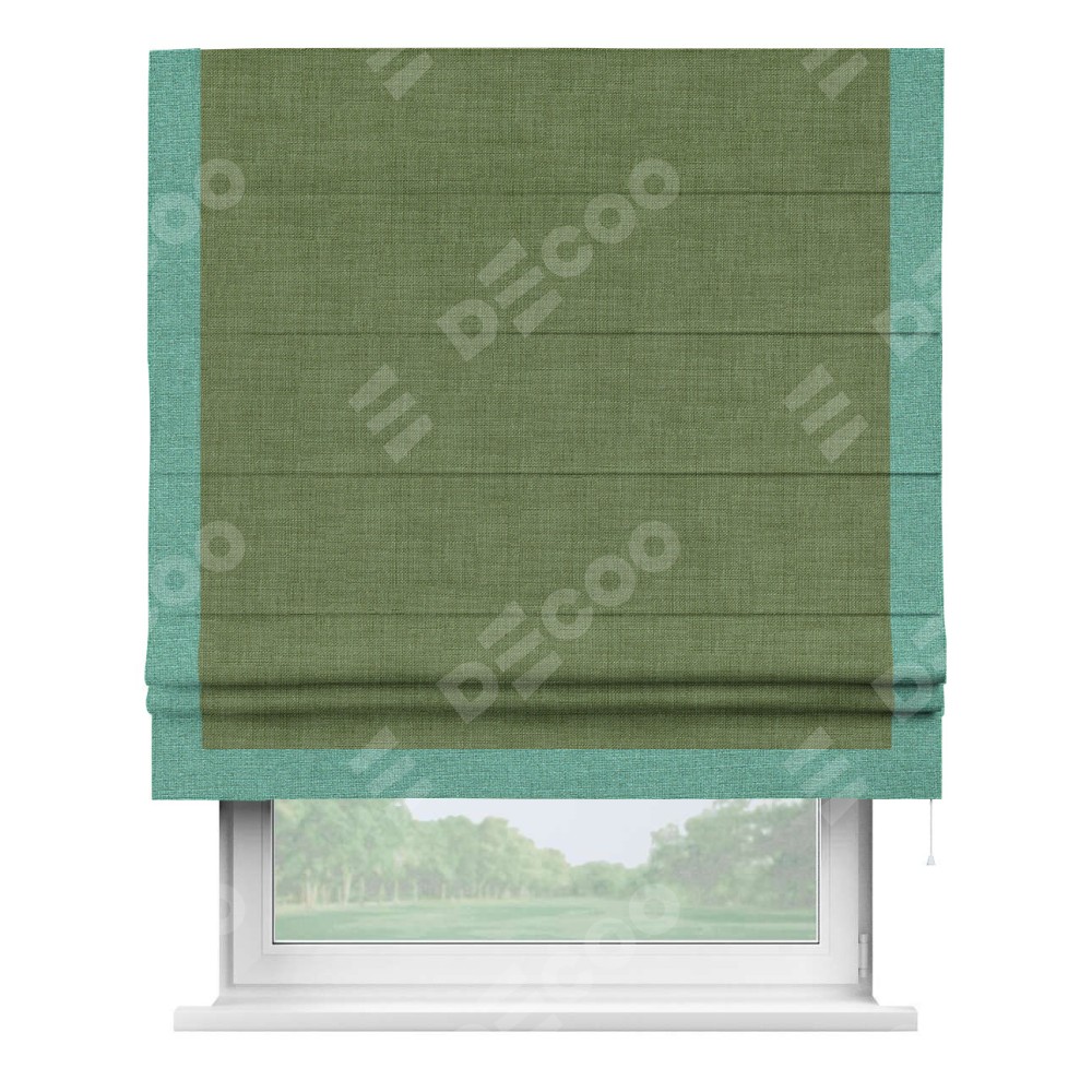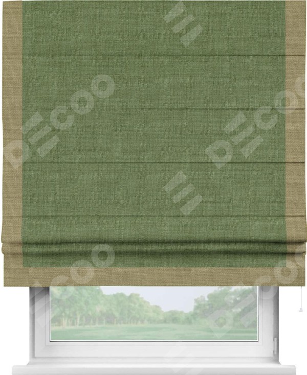 Римская штора «Кортин» для проёма, лён зелёный, с кантом Виктория