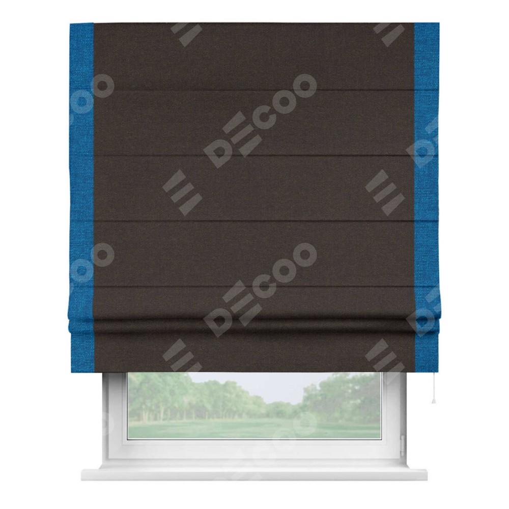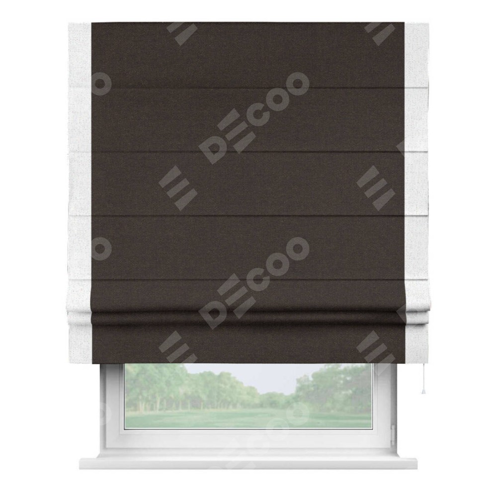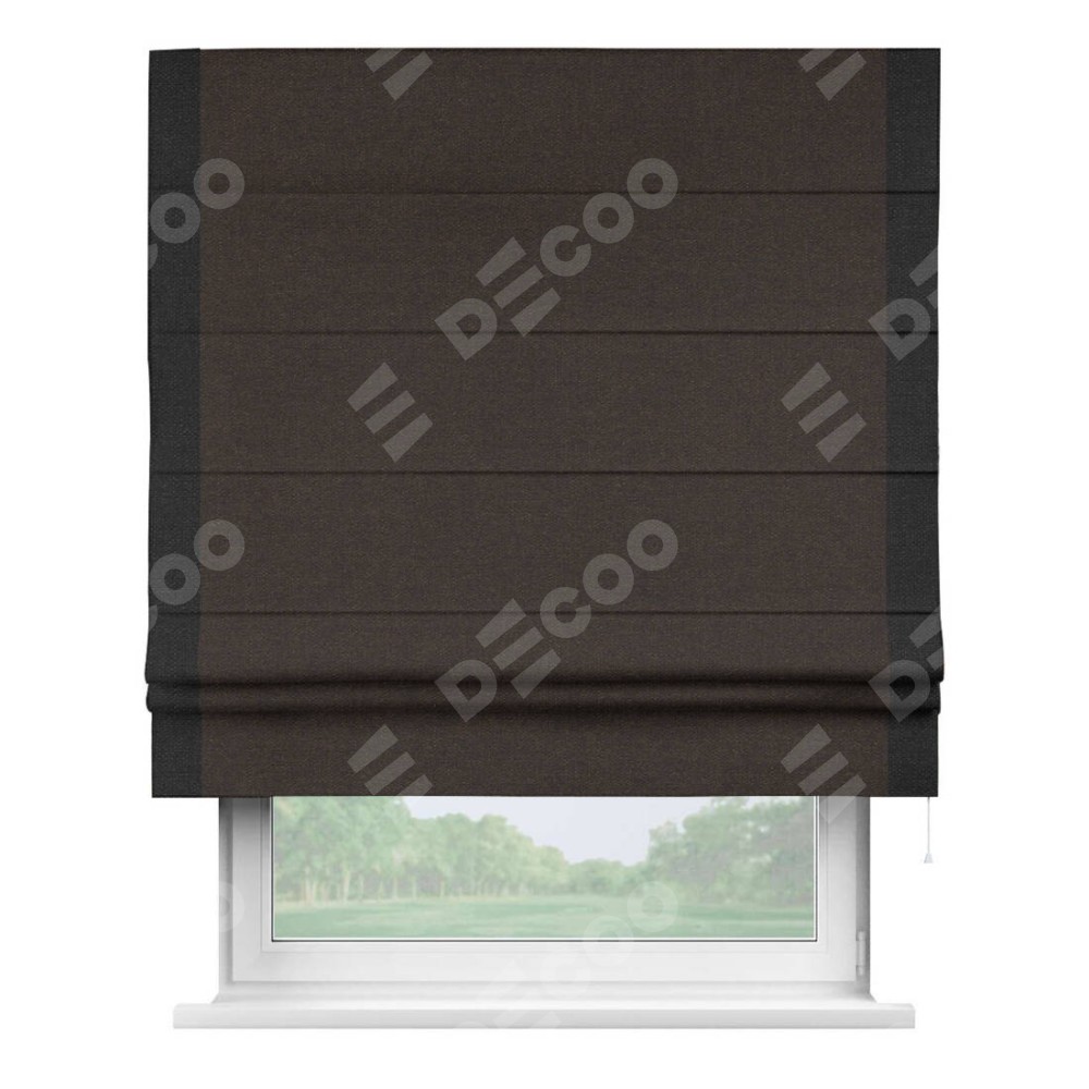 Римская штора «Кортин» для проёма, лён тёмно-коричневый, с кантом Стрим Дуо
