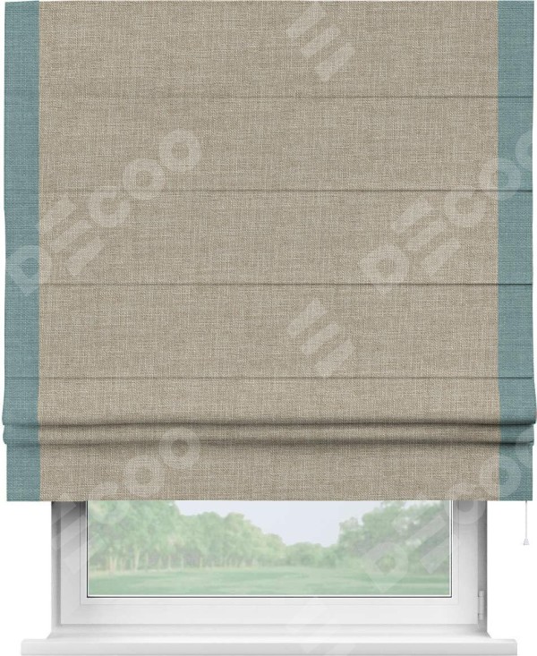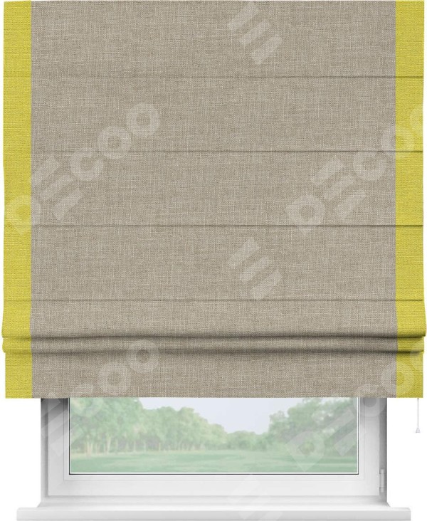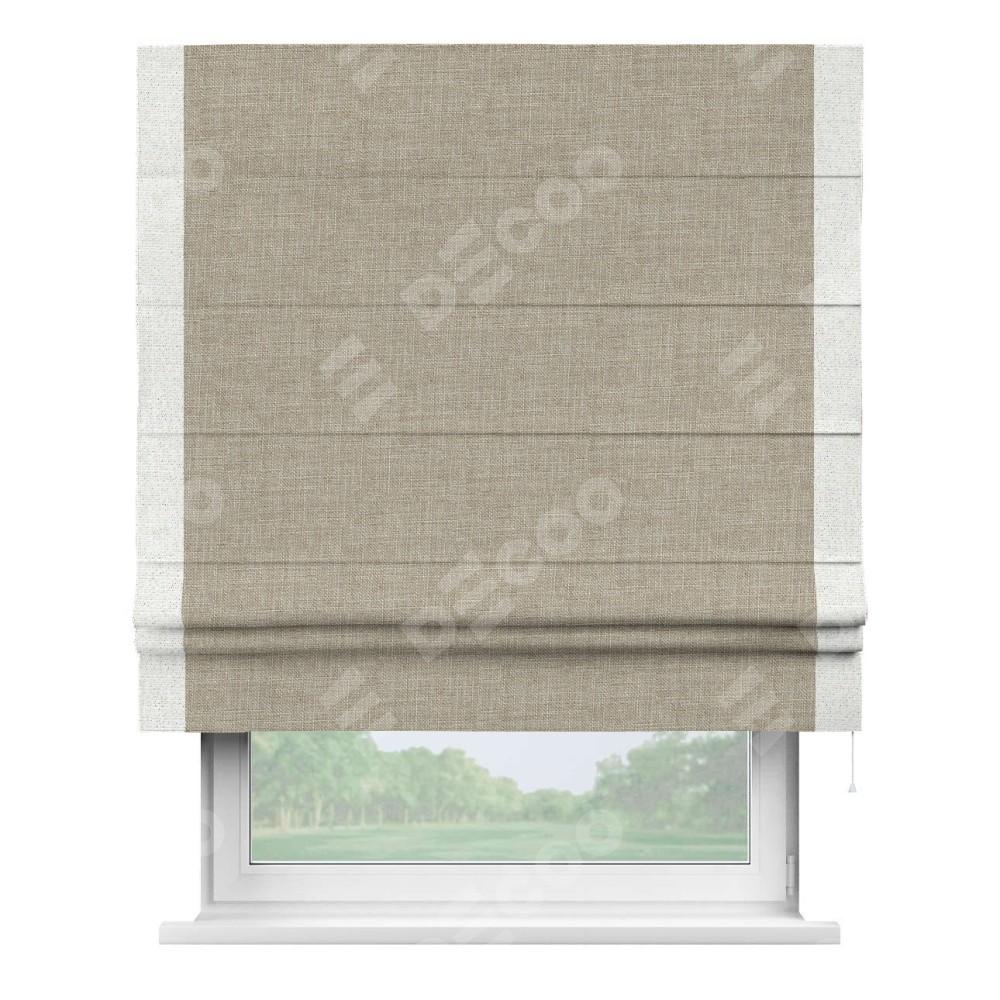 Римская штора «Кортин» для проёма, лён бежевый, с кантом Стрим Дуо
