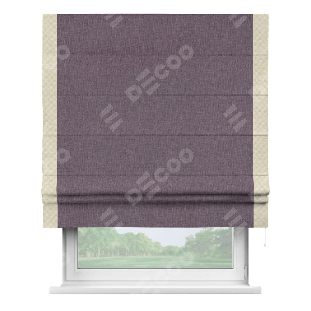 Римская штора «Кортин» с кантом Стрим Дуо, для проема, ткань лён димаут, светло-фиолетовый