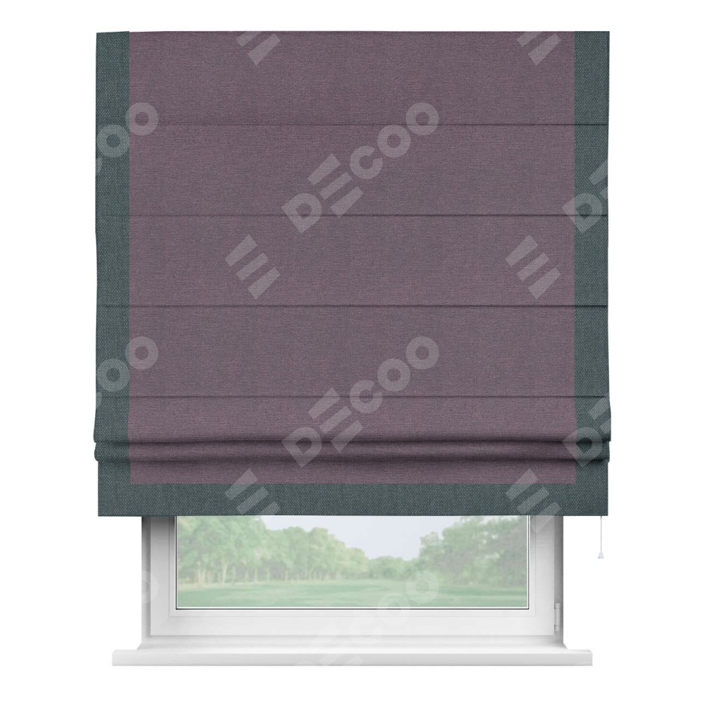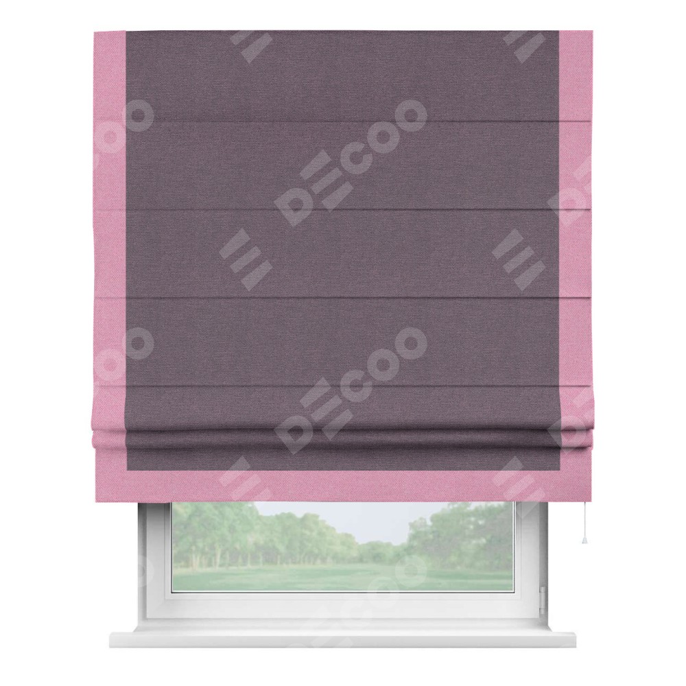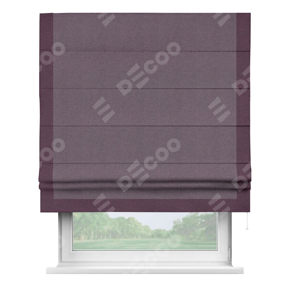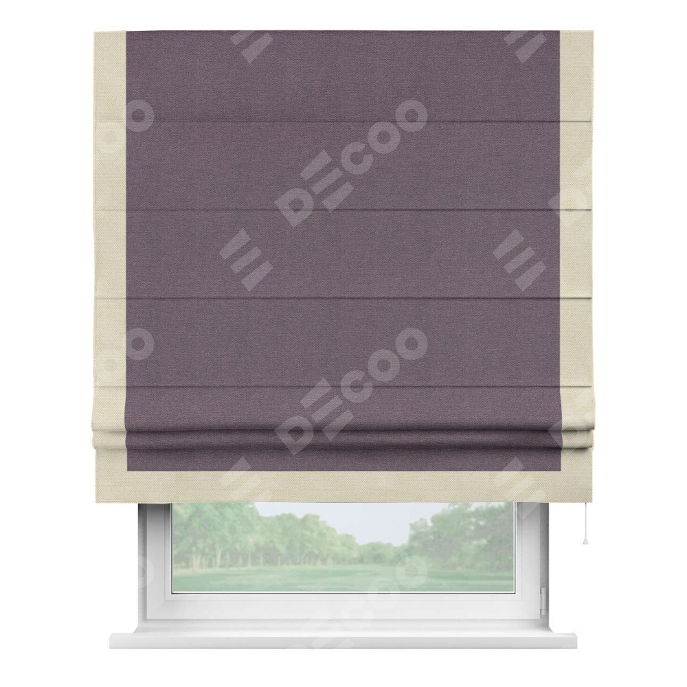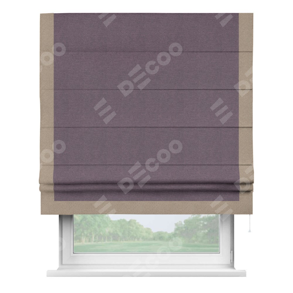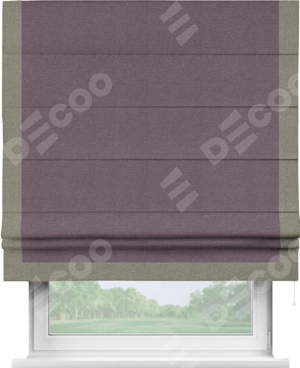Римская штора «Кортин» с кантом Виктория, для проема, ткань лён димаут, светло-фиолетовый