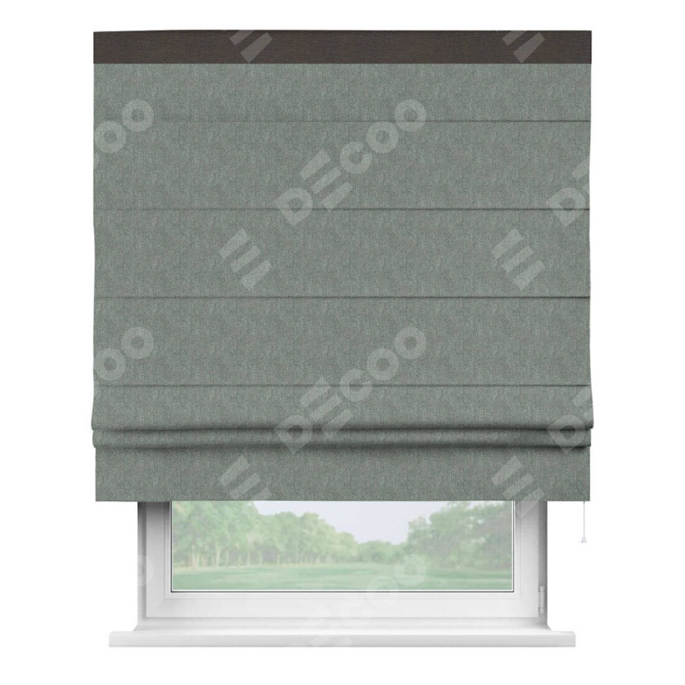 Римская штора производителя «Cortin», используется для проёма, пошита из ткани лён димаут серый, артикул 16240. Отделка шторы кантом «Кинг», ткань для канта используется из льна димаут разной расцветки на выбор. Имеет универсальный механизм и подходит для монтажа: на потолок, на стену и в нишу.