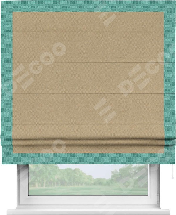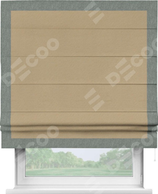 Римская штора «Кортин» с кантом Чесс, для проема, ткань лён димаут, тёмно-бежевый