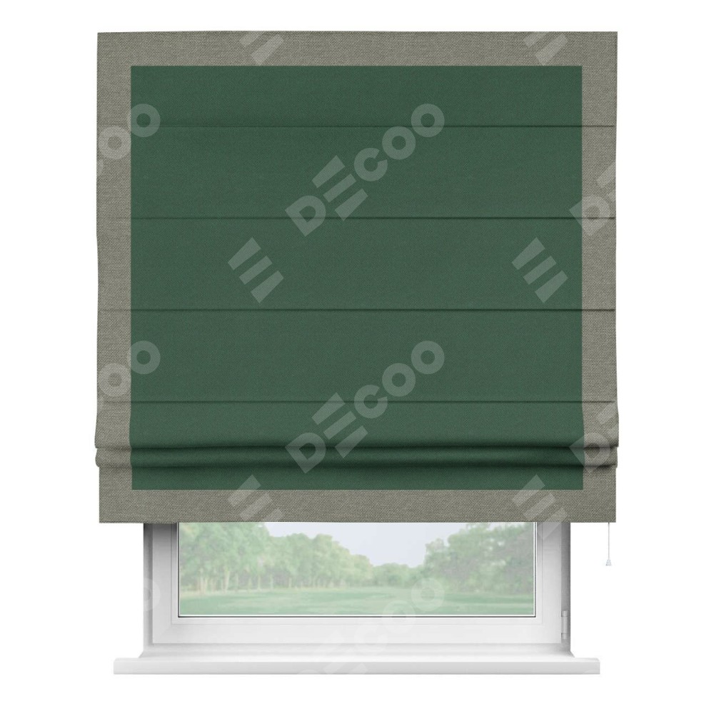 Римская штора «Кортин» с кантом Чесс, для проема, ткань лён димаут, тёмно-зелёный
