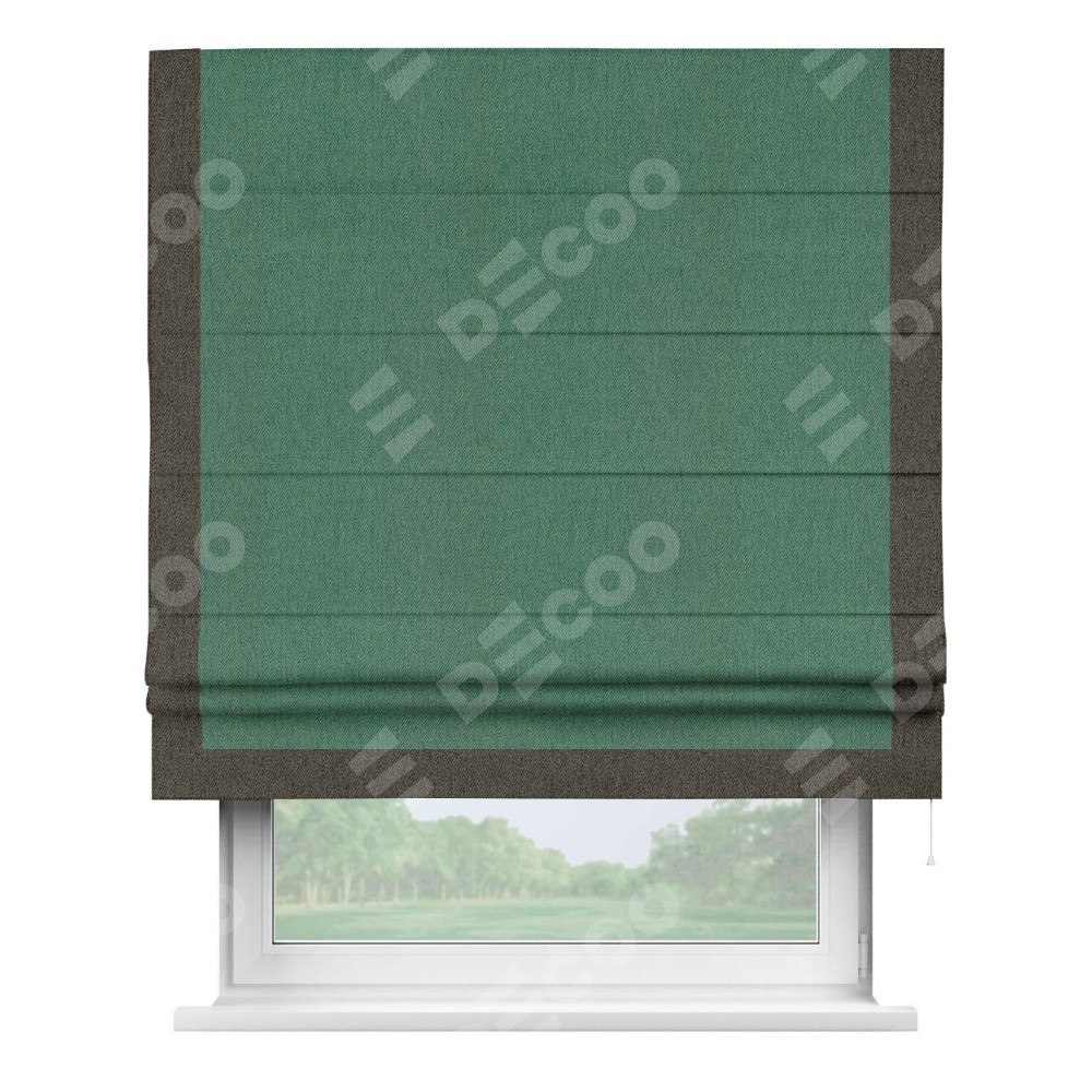 Римская штора «Кортин» с кантом Виктория, для проема, ткань твид блэкаут, зелёный