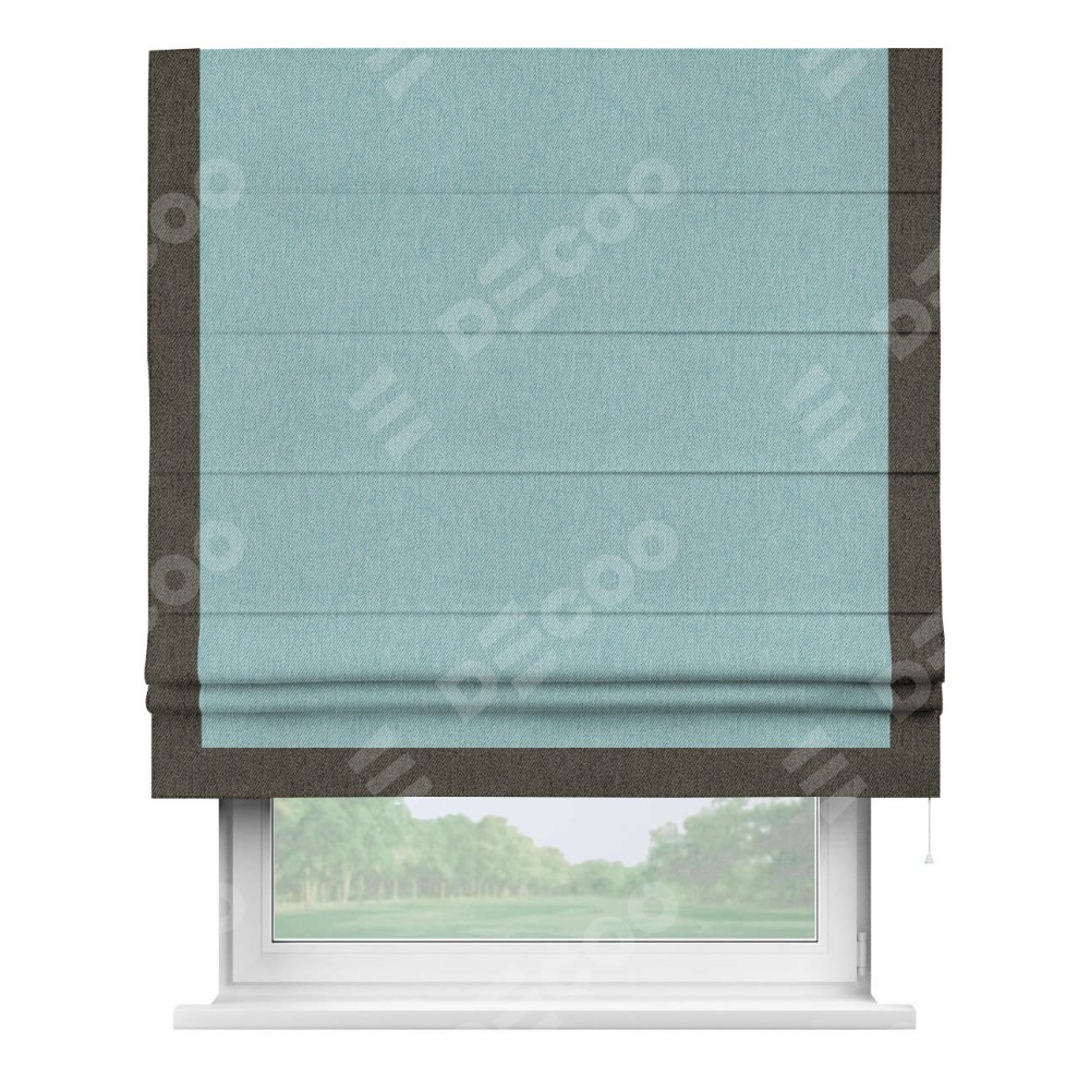 Римская штора «Кортин» с кантом Виктория, для проема, ткань твид блэкаут, небесно-голубой