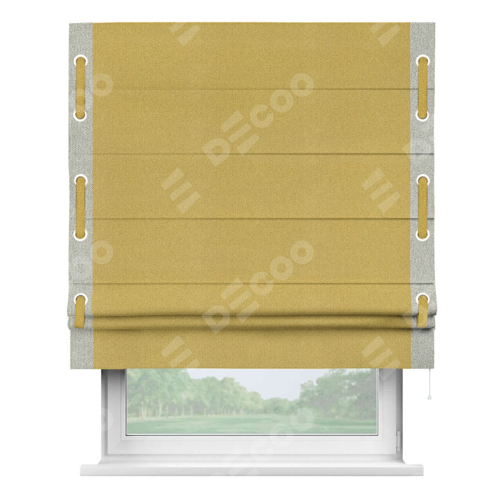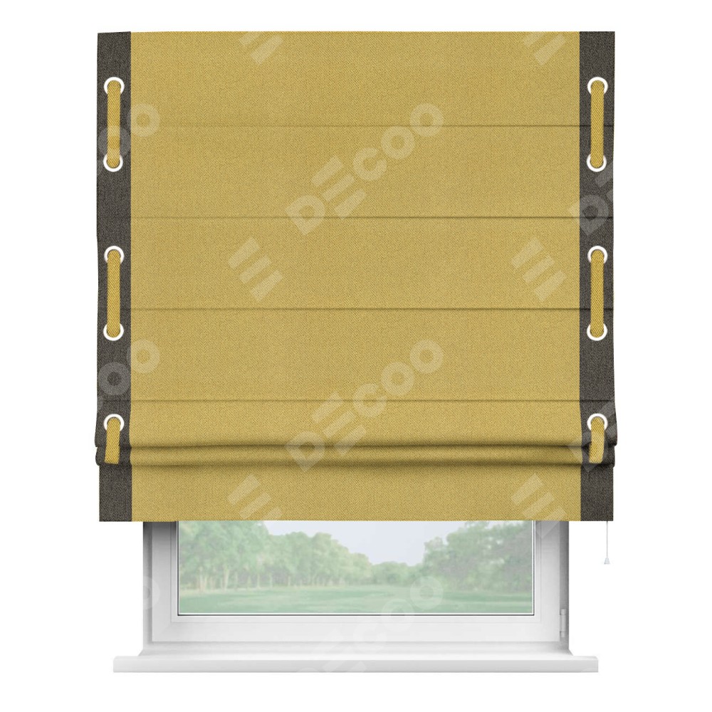 Римская штора «Кортин» с кантом Стрим Дуо (люверсы с пояском), для проема, ткань твид блэкаут, пыльная горчица
