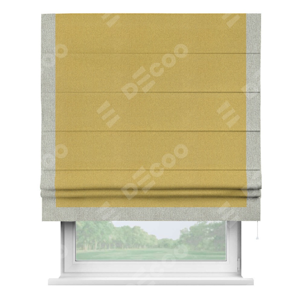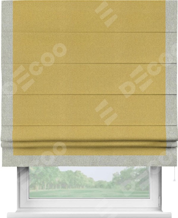 Римская штора «Кортин» с кантом Виктория, для проема, ткань твид блэкаут, пыльная горчица