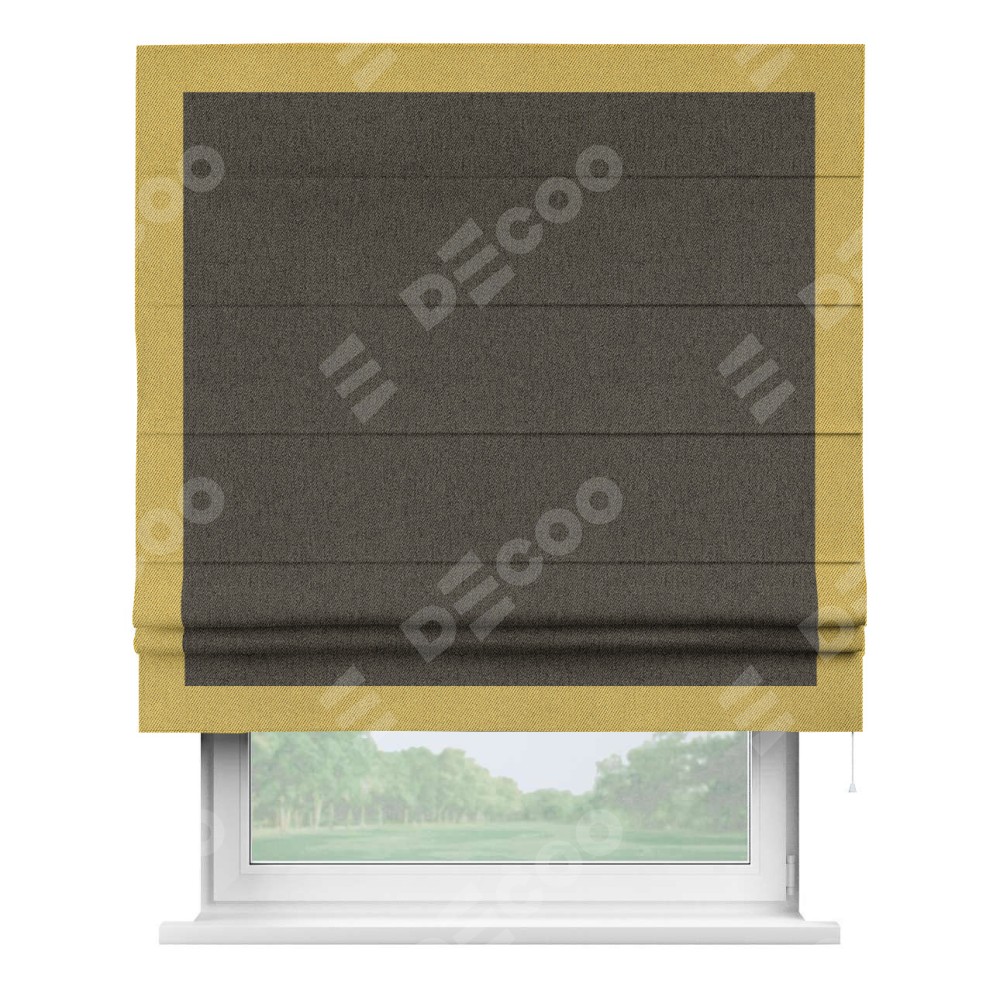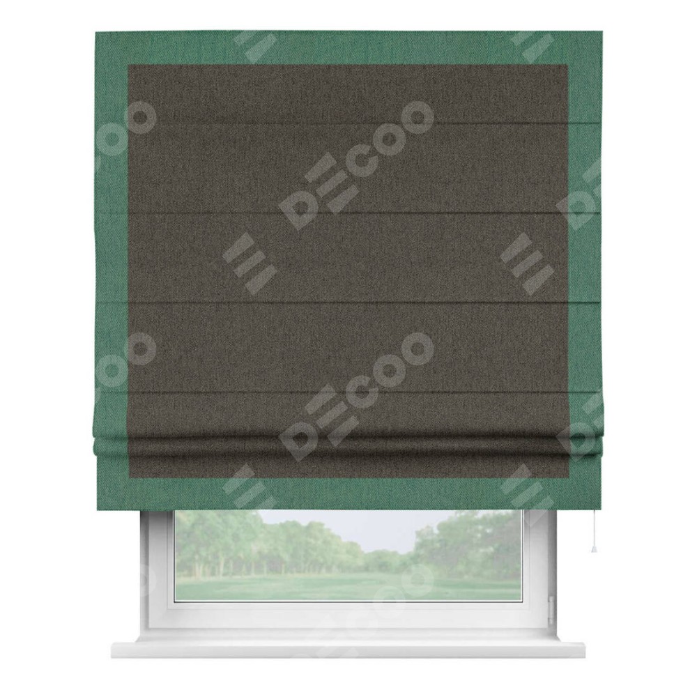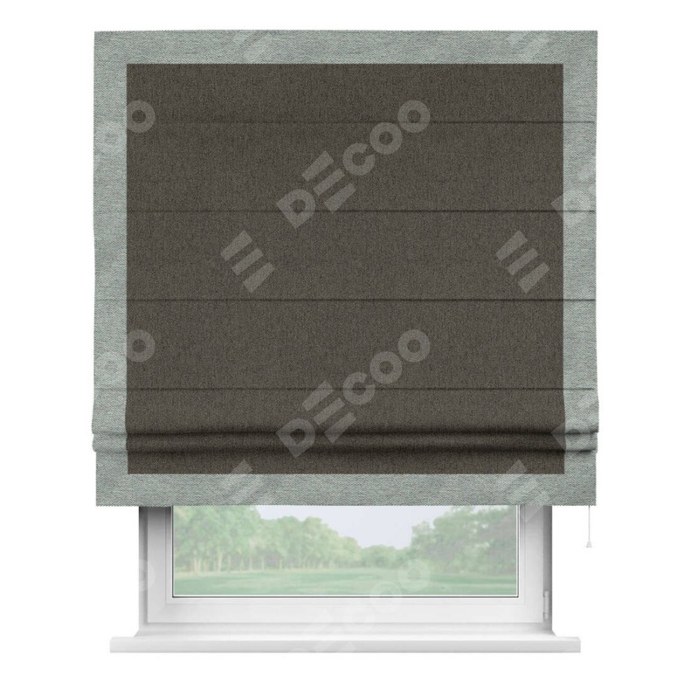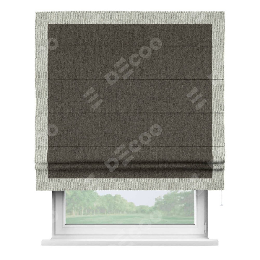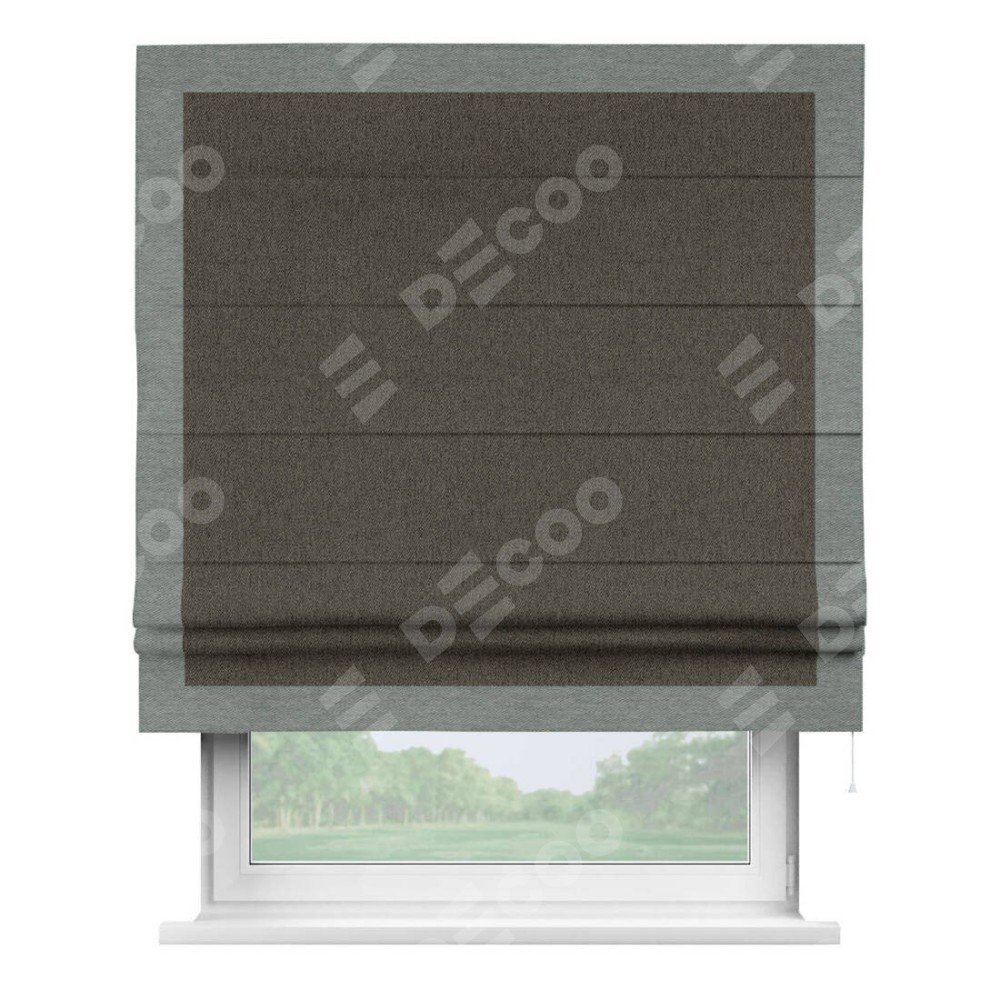 Римская штора «Кортин» с кантом Чесс, для проема, ткань твид блэкаут, тёмно-коричневый