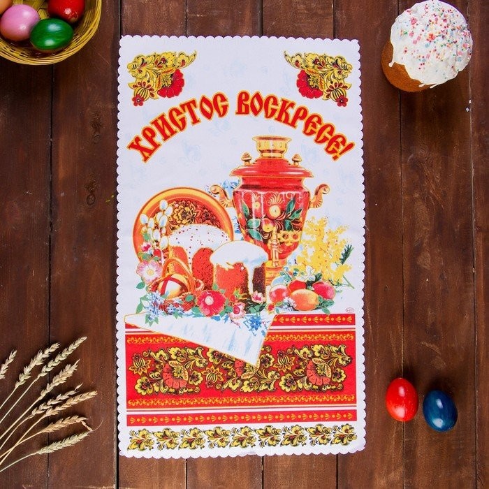 Рушник — один из самых древних и символичных предметов, дошедших до наших дней и не потерявших своего назначения. Пасхальный рушник (или салфетка) появился с принятием христианства на Руси. На нём изображены красивые православные храмы, религиозная символика и надписи «Христос Воскрес».