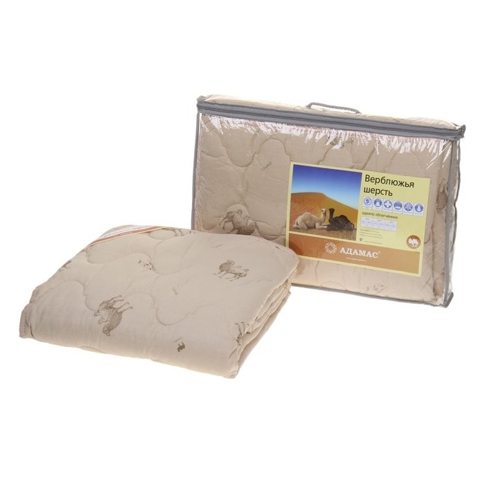 Одеяло всесезонное Адамас «Верблюжья шерсть», размер 172×205 ± 5 см, 200гр/м2, чехол тик незаменимо в жару. Дело в том, что шерсть верблюда хорошо поглощает и испаряет влагу. Поэтому одеяло прекрасно регулирует температуру тела.