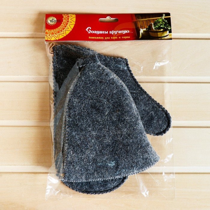 Для комфортного отдыха в парной возьмите с собой набор банных принадлежностей. Предметы из этого комплекта предохраняют тело от перегрева и являются средствами индивидуального пользования. Влажные изделия рекомендуется сушить в расправленном виде на горизонтальной поверхности. Принадлежности из войлока и фетра стирайте вручную при температуре воды 30 °C.