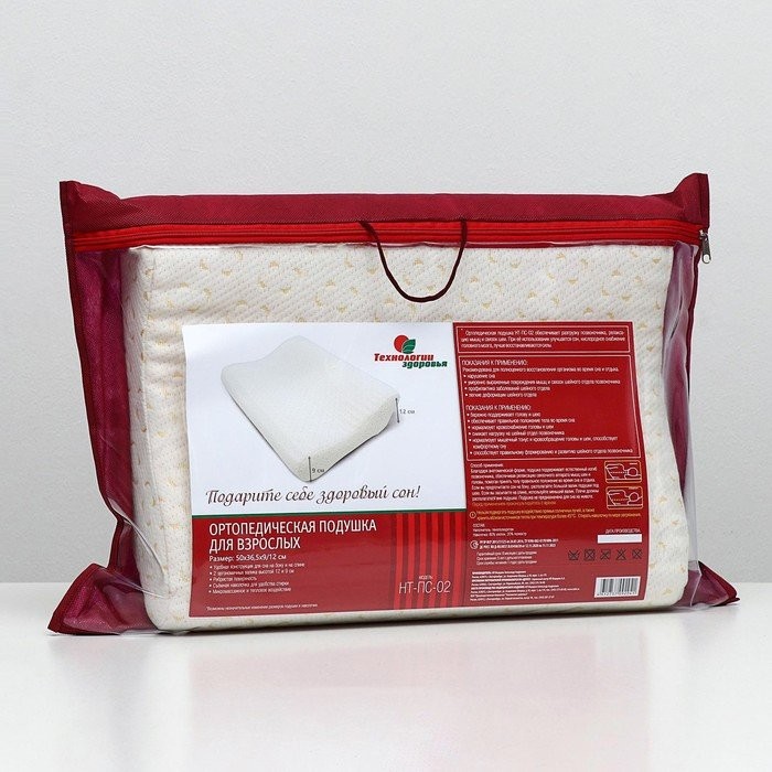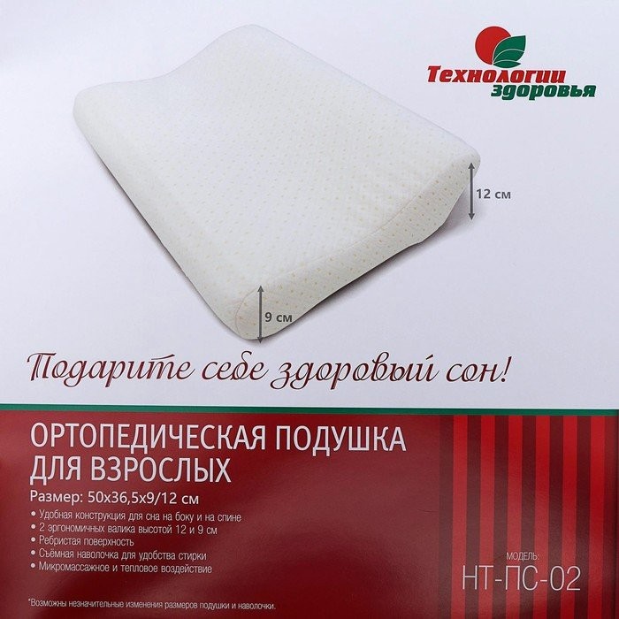 Подушка ортопедическая НТ-ПС-02, для взрослых, 50×36.5 см, валики 9/12 см