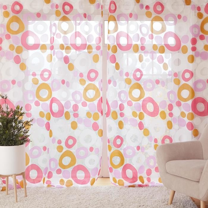 Тюль «Этель» Калейдоскоп (цвет розовый) без утяжелителя, ширина 135 см, высота 270 см