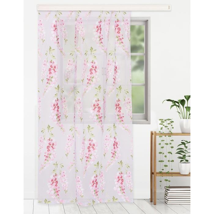 Тюль «Этель» Виноградная лоза (розовый) без утяжелителя, ширина 135 см, высота 270 см