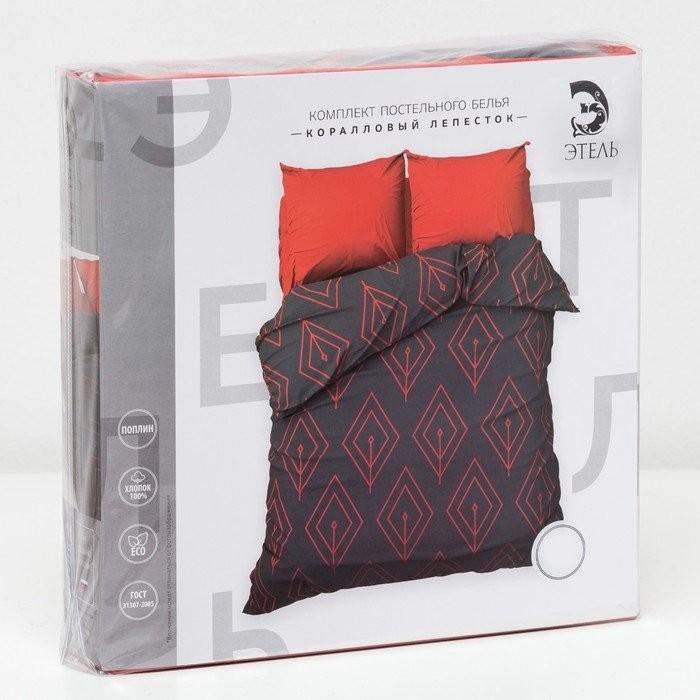 Постельное бельё «Этель» 2 сп. Коралловый лепесток 175×215 см, 200×220 см, 70×70 см — 2 шт., поплин 125 г/м²