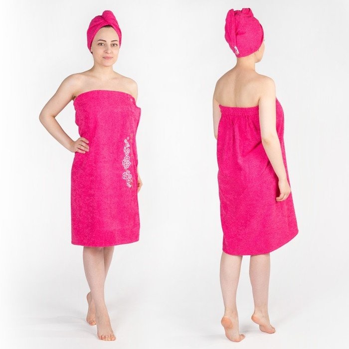 Набор д/сауны махр. жен. (Килт (юбка) (80×150±2)+ чалма), цвет малиновый
