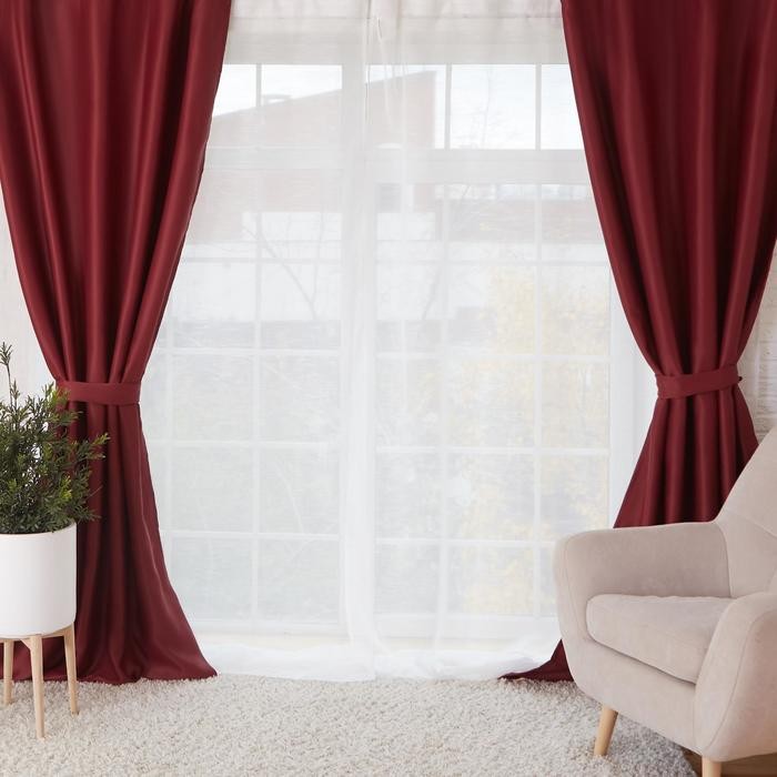 Штора портьерная «Этель» 200×250, цвет бордовый, блэкаут, 100% п/э