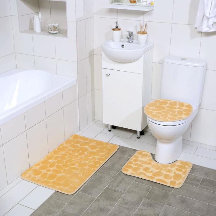 Набор ковриков для ванны и туалета Доляна «Галька», 3 шт: 36×42, 40×50, 50×80 см, цвет бежевый