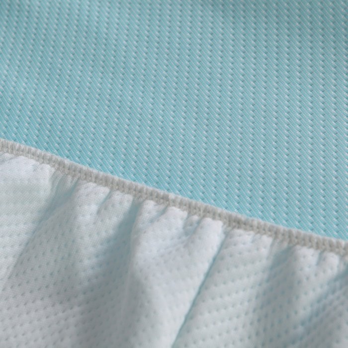 Наматрасник произведён из материала Double Jersey — термостёганого полотна плотностью 250 г/м². Это мягкий и лёгкий материал, который максимально приятен и удобен в использовании.