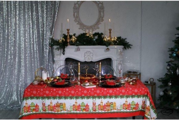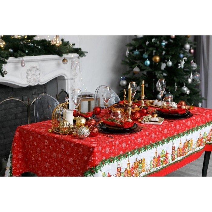 Скатерть Доляна «Новый год: Волшебный город» 180×149 см, 100% хлопок, 164 г/м2