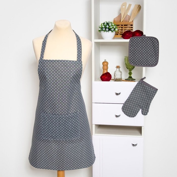 Набор Доляна фартук/прихватка/варежка, Горох сер, 100%пэ, рогожка 200 гр/м