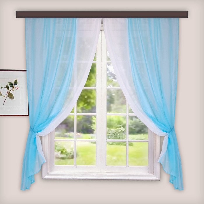 Комплект штор для кухни Лидия 250×160 см, голубой, пэ 100%