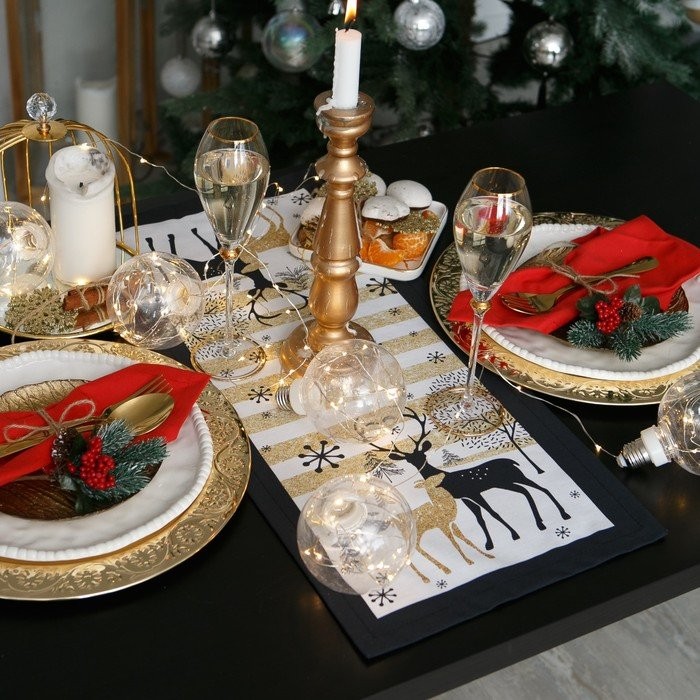 Дорожка на стол «Этель: Олени», 30 × 70 см, 100% хлопок, саржа, 190 г/м²