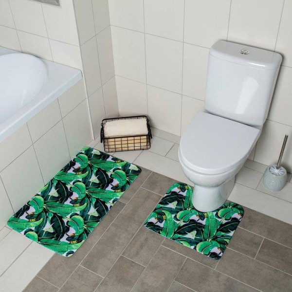 Набор ковриков для ванны и туалета Доляна «Тропики», 2 шт: 40×45, 45×75 см