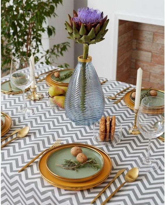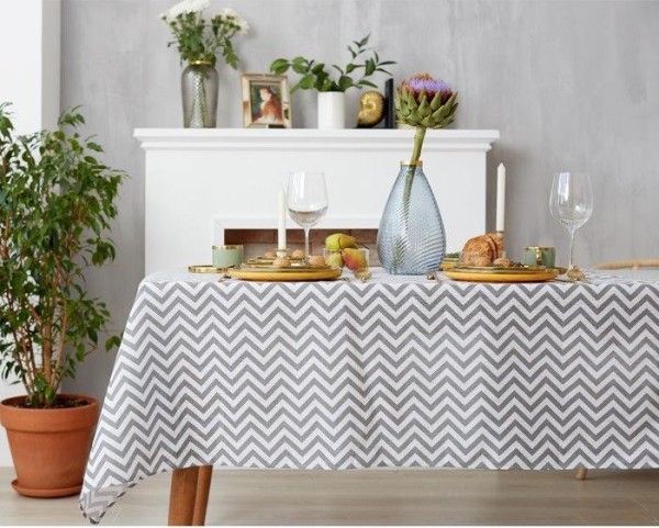 Набор Доляна скатерть 145х200см/салфетки 40х40см 4шт, Зигзаг сер, 100%пэ, рогожка 200 гр/м