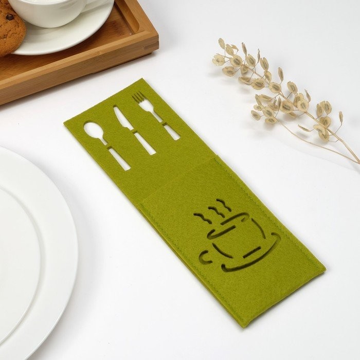 Конверт для столовых приборов Доляна «Кофе» цвет зелёный, 9×25 см