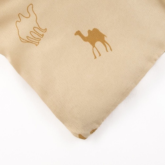 Чехол состоит из 100%-го полиэстера. Состав наполнителя: верблюжья шерсть 10%, полиэфирное волокно 90%.