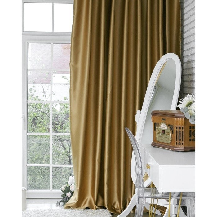 Штора портьерная «Этель» 130×300 см, двусторонний блэкаут, цвет Золотой, пл. 240 г/м², 100% п/э