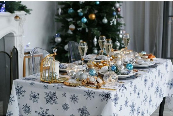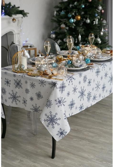Скатерть Доляна «Новый год: Синие снежинки» 180×149 см, 100% хлопок, 164 г/м2