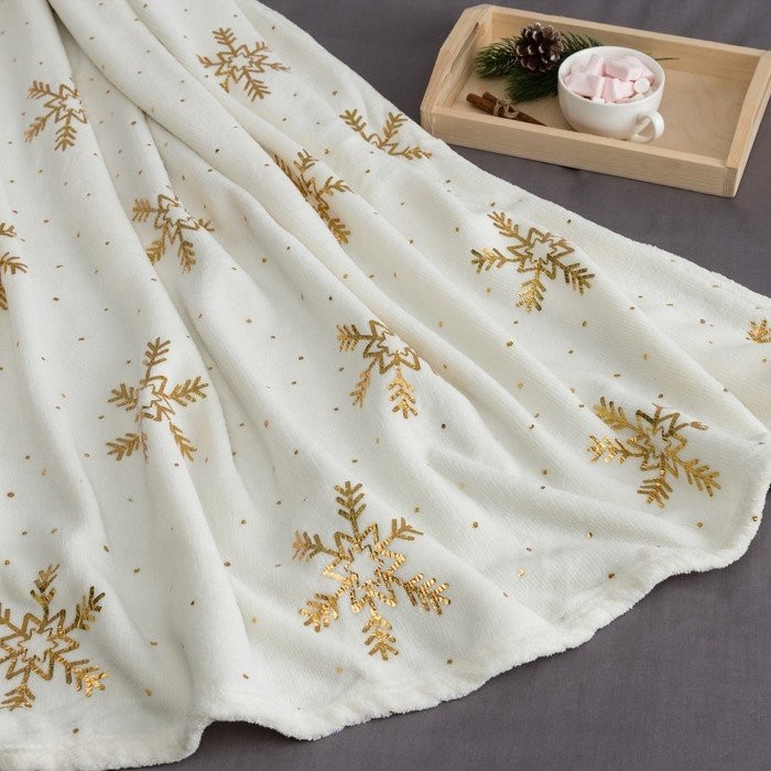 Плед Этель «Золотые снежинки», белый, 180×200 см, корал-флис